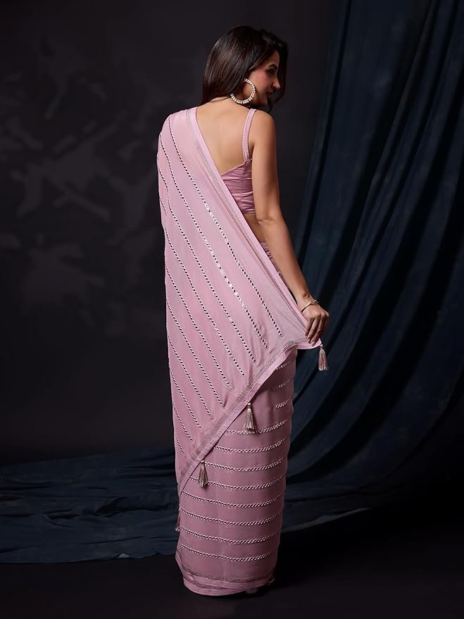 Women’s Silk Sequins Embroidery Stripted Saree with Blouse Piece